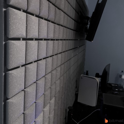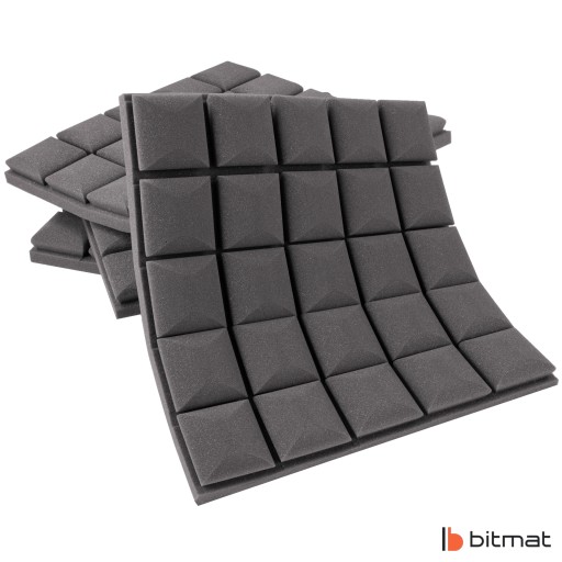 Pianka akustyczna kostka profilowana marki Bitmat zwana także panelem akustycznym jest wykonywana ze spienionego poliuretanu, a jego struktura to otwarte komórki. Zastosowanie odpowiednich stożków doskonale sprawdza się w studiach i pokojach muzycznych/kabinach lektorskich, ponieważ poprawia zrozumiałość mowy i wokalu. Jest to zastosowanie optymalne, które przy stosunkowo niskich kosztach pozwala zapobiegać pogłosowi, poprawia jakość dźwięku w pomieszczeniach mieszkalnych i roboczych, a także tworzy nowoczesny design.