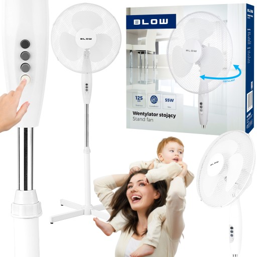 Mocny i cichy wentylator marki BLOW to nowoczesne urządzenie dzięki któremu możemy zapomnieć o doskwierającym upale. Wiatrak posiada aż 3 stopnie pracy oraz funkcje oscylacji, dzięki której mamy pewność, że powietrze będzie cyrkulować po całym pomieszczeniu.
