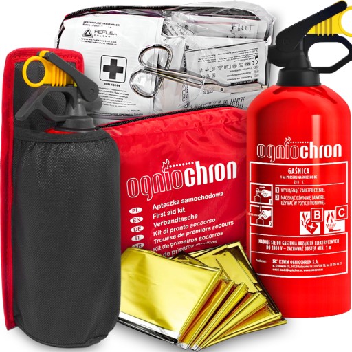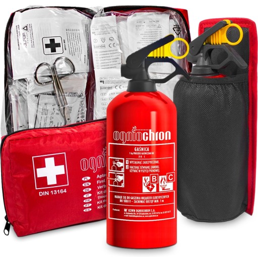 ✅ ZESTAW OGNIOCHRON GAŚNICA 1KG + APTECZKA + UCHWYT