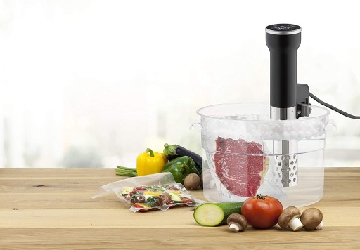 Cyrkulator Sous-Vide dzięki któremu przygotujesz potrawy metodą długiego gotowania w szczelnie zamkniętych workach plastikowych, umieszczonych w gorącej wodzie. Celem metody jest zachowanie naturalnego smaku i jakości żywności. Precyzyjne gotowanie żywności dzięki elektronicznej regulacji temperatury.