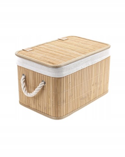 Wykonany z naturalnego bambusa koszyk posłuży jako pojemnik na kosmetyki, ręczniki, szczotki lub do przechowywania innych przedmiotów używanych w gospodarstwie rodzinnym. Prosty i naturalny wygląd sprawia, że pojemnik wkomponuje się w każde pomieszczenie. Zaletą koszyka bambusowego jest niewątpliwie elegancki wygląd. Kosz wyposażony został w wewnętrzny wyjmowany wkład z lnu, który nie pochłania wilgoci i nieprzyjemnych zapachów. Konstrukcja pojemnika jest stabilna i sztywna.