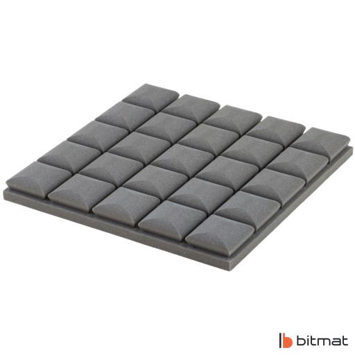 Pianka akustyczna kostka wypukła marki Bitmat zwana także panelem akustycznym jest wykonywana ze spienionego poliuretanu, a jego struktura to otwarte komórki. Zastosowanie odpowiednich stożków doskonale sprawdza się w studiach i pokojach muzycznych/kabinach lektorskich, ponieważ poprawia zrozumiałość mowy i wokalu. Jest to zastosowanie optymalne, które przy stosunkowo niskich kosztach pozwala zapobiegać pogłosowi, poprawia jakość dźwięku w pomieszczeniach mieszkalnych i roboczych, a także tworzy nowoczesny design.