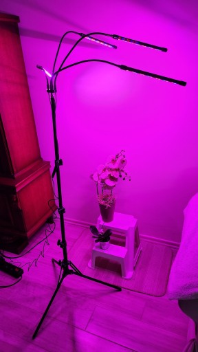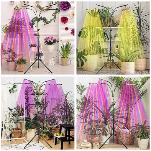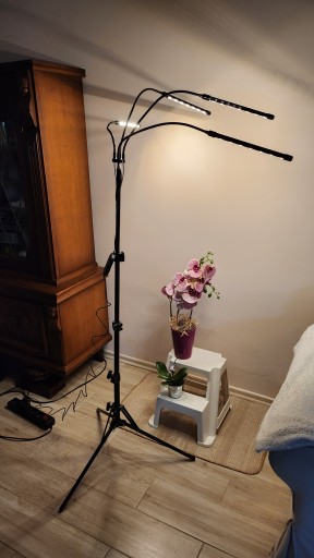 Statyw o regulowanej do 150cm wysokości i rozpiętości świecących głowic do 120cm umożliwia oświetlenie dużego obszaru uprawy.