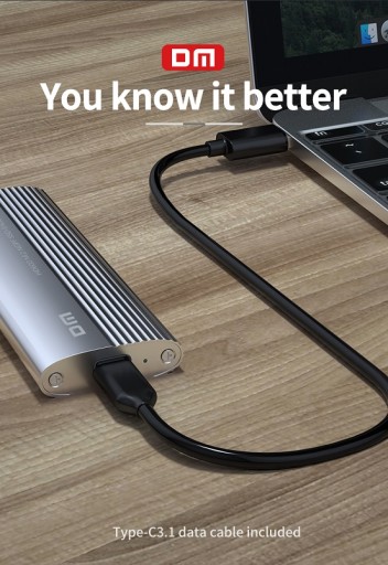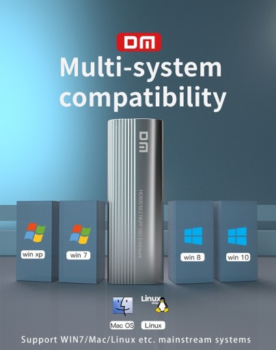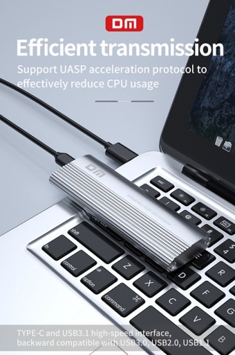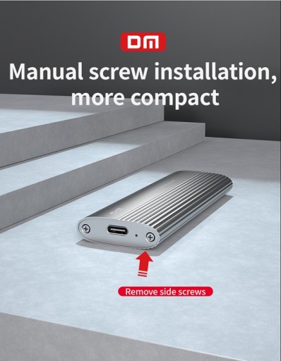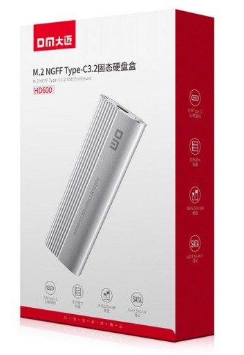 DM HD600 Type-C 3.2 Gen1 Key M.2 NGFF SSD Box to adapter dysku, który dzięki wysokim prędkościom transferu znacznie przyspiesza działanie komputera lub notebooka. Możesz łatwo zacząć z niego korzystać dzięki kompatybilności ze wszystkimi dyskami SSD typu NGFF M.2 SATA. Jego korpus ze stopu aluminium ma znacznie większą wytrzymałość niż korpusy wykonane ze standardowego tworzywa ABS. W ten sposób dysk SSD w pudełku najlepiej chroni dyski i zapobiega ich uszkodzeniu przez uderzenia i wibracje. Obsługuje szybkość transferu do 5 Gb/s przy użyciu wyjścia typu C i interfejsu połączenia USB z komputerem. Wysoka szybkość transferu oszczędza czas, wykonując transfery plików w bardzo krótkim czasie. Używając śrubokręta dołączonego do pudełka, możesz odkręcić śruby na górze pudełka i umieścić w nim dysk M.2 NGFF i używać go. Dane techniczne Kod produktu: DM HD600 Kolor: srebrny Materiał: stop aluminium, ABS Szybkość przesyłania danych: 5 Gb/s Maksymalna pojemność dysku: 6 TB Obsługiwany rozmiar dysku: M.2 (NGFF) 2230/2242/2260/2280 SSD Interfejs połączenia: Typ- C 3.2 Zawartość opakowania 1 x klucz DM HD600 Type-C 3.2 Gen1 B&M/B Pudełko M.2 NGFF SSD 1 x śrubokręt 1 x śruba 1 x gniazdo na śrubę 1 x kabel danych USB typu C