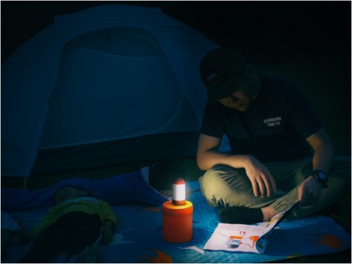 - skierować strumień światła w dół np. do oświetlenia wnętrza namiotu (dwa tryby jasności)
