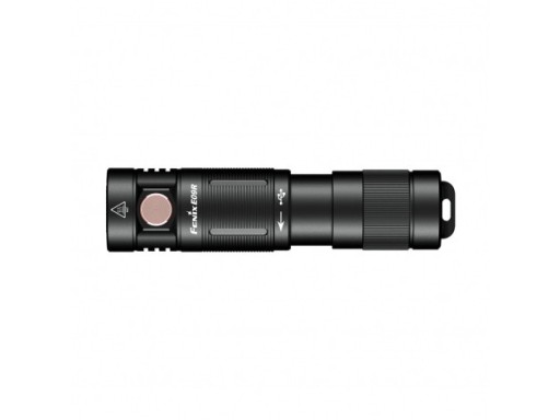 Korpus latarki Fenix E09R wykonano z aluminium, poddanego procesowi twardego anodowania HA-III, dzięki czemu tubus i głowica latarki są odporne na uszkodzenia mechaniczne, zarysowania i wytarcie. Kompaktowa wielkość latarki (79 mm), pozwala na wygodne przenoszenie latarki w kieszeni lub mocowanie jej w formie breloka do kluczy. Moletowana powierzchnia aluminium poprawia przyczepność i zapobiega wyślizgiwaniu się latarki z dłoni.