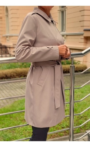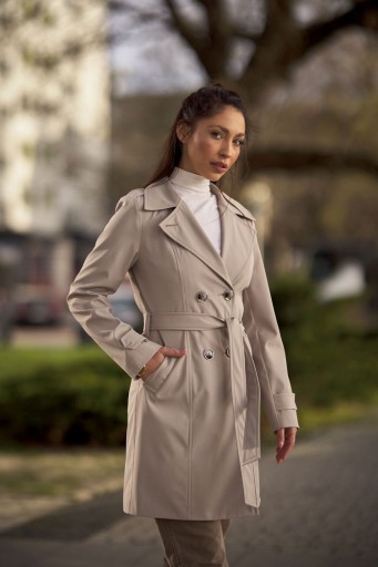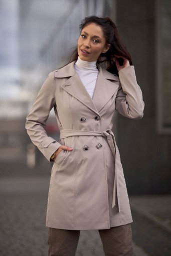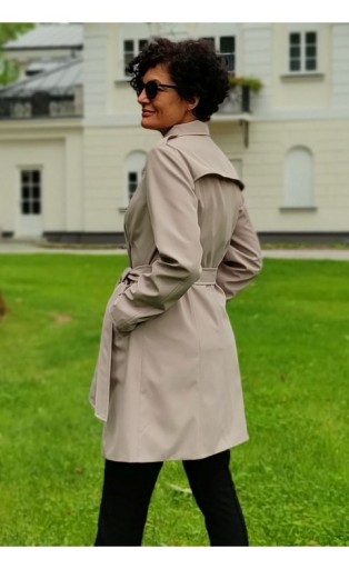Beżowy trencz to najbardziej klasyczne i ponadczasowe okrycie wierzchnie, które od wielu lat nie wychodzi z mody. Przykuwa uwagę swoim perfekcyjnym wykonaniem i wysokiej jakości wodoodpornym materiałem. Posiada wiele elementów dekoracyjnych tj.: pagony w ramionach, patki w rękawach, karczek na plecach oraz dwurzędowe zapięcie na stylowe guziki. Po bokach wszyto dwie kieszenie umożliwiające schowanie dłoni, telefonu i kluczyków. Płaszczyk podbito podszewką. W deszczową lub mroźną pogodę uchroni przed zimnem i wiatrem. Świetnym dodatkiem jest pasek regulujący wcięcie w talii i podkreślający atuty kobiecej sylwetki. Można go upiąć w kokardę lub na węzeł. Gustowny trencz doskonale współgra ze szpilkami, kozakami i botkami. Choice — jakość ma dla nas ogromne znaczenie.
