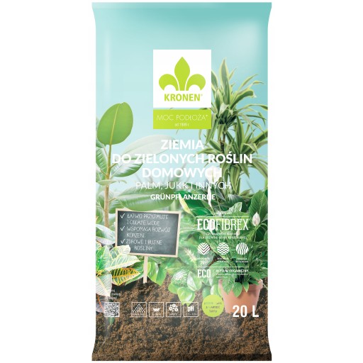 KRONEN® Ziemia do palm, jukk i dracen to doskonałe podłoże do sadzenia i przesadzania roślin zielonych o ozdobnych liściach uprawianych w pojemnikach. Rośliny posadzone w tym podłożu rosną zdrowo i bujnie.