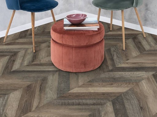 Dąb Ripon ciemny to klasyczny laminat, imitujący deski z wyrazistym wzorem w jodełkę.