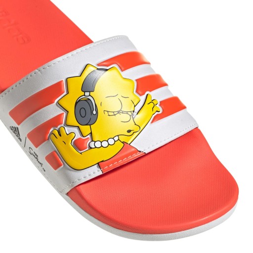 Nowe kultowe klapki Adidas Adilette, popularne od 1972 roku wśród plażowiczów i bywalców basenów, w zabawnej wersji z grafiką przedstawiającą Lisę Simpson. Miękki pasek na górze i profilowana wkładka zapewniają wygodę, z której słyną klapki.