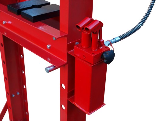Za pośrednictwem dołączonej dźwigni można uzyskać nacisk do 30 ton, precyzyjnie kontrolowany poprzez manometr. Dwustopniowa pompa umożliwia szybszy wysuw tłoka jak i wolniejszy, bardziej precyzyjny.