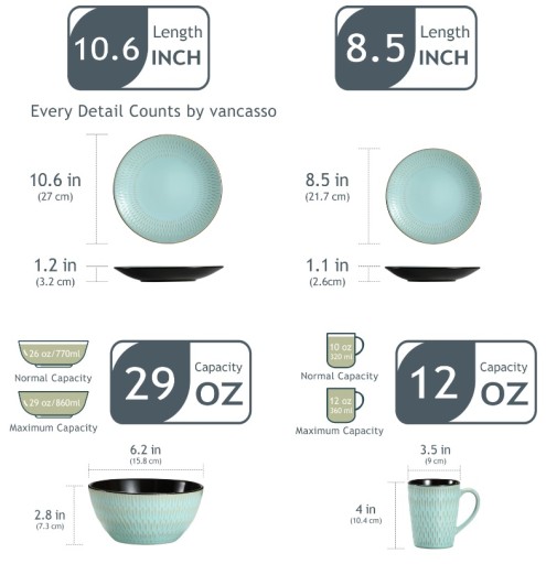 ✅ 12 kubków o średnicy 9cm, wysokości 10,4cm oraz pojemności 360ml.