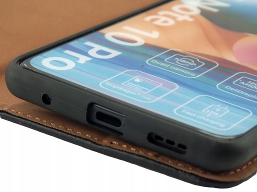 Dodatkowym zabezpieczeniem jest wszyte w pokrowiec magnetyczne zamknięcie zapobiegające przypadkowemu otwarciu klapki ,a funkcja "stand" pozwala na ułożenie telefonu w taki sposób, abyś wygodnie mógł oglądać video, przeglądać zdjęcia czy korzystać z internetu.