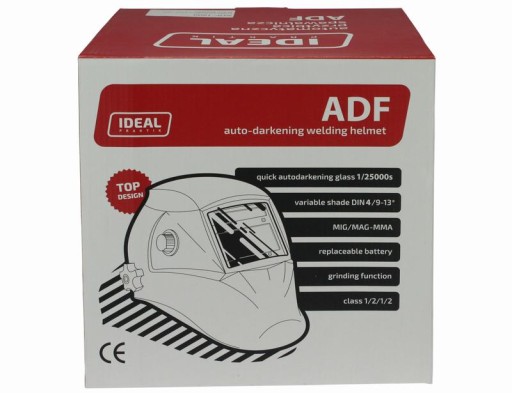 Przyłbica spawalnicza ADF-1900 firmy IDEAL posiada regulację stopnia ochrony w zakresie DIN 4/9-13, zmiennym czasem rozjaśniania i możliwością ustawienia wrażliwości czujników. Przeznaczona do spawania metodą MIG/MAG oraz MMA. Dodatkowo wyposażona jest również w funkcję szlifowania umożliwiając pracę z narzędzniem bez .