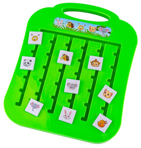 - Planszę z przesuwnymi klockami z motywami zwierzątek,