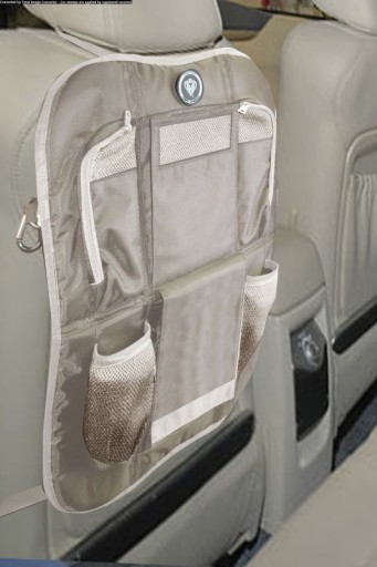 Organizer jest zapinany wokół zagłówka, pasuje praktycznie do każdego modelu fotela samochodowego. Łatwy do utrzymania w czystości.