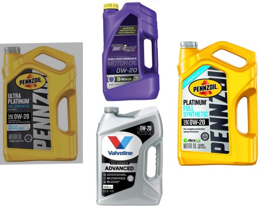Oleje silnikowe 0W20 Pennzoil, Royal Purple, Valvoline.