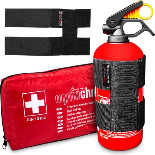 | GAŚNICA PROSZKOWA 1KG | APTECZKA SAMOCHODOWA DIN13164 | UCHWYT Z RZEPEM |