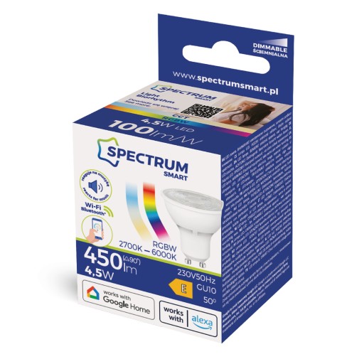 Żarówka LED HALOGEN GU10 4,5W 480lm RGB+CCT SPECTRUM Smart WiFi BT Ściemnialna