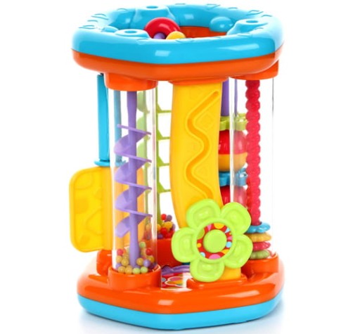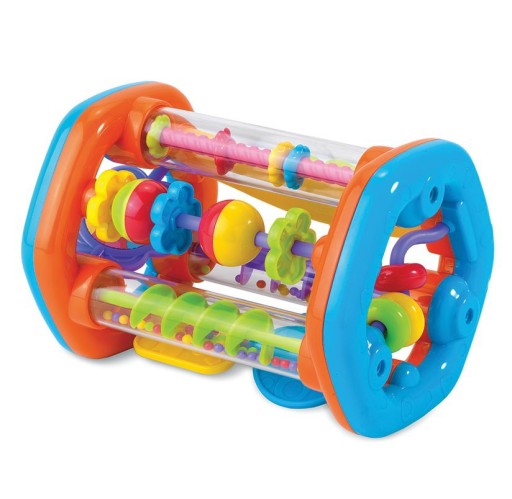 Roler będący jednocześnie sorterem to moc niespodzianek w jednej zabawce! Poprzez przekręcanie maluch wprowadza w ruch kolorowe kuleczki.