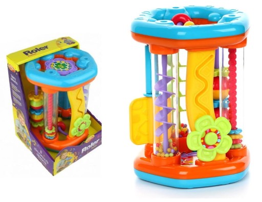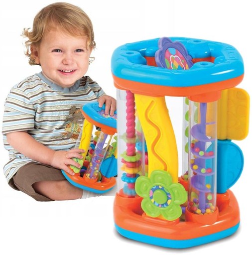 Roler będący jednocześnie sorterem to moc niespodzianek w jednej zabawce! Poprzez przekręcanie maluch wprowadza w ruch kolorowe kuleczki. Przesypując się z góry na dół wydają dźwięki zachęcając pociechę do dalszej zabawy i odkrywania kolejnych ciekawostek! To połączenie klasycznej funkcji rozwijającego sortera z nową, znacznie bardziej interesującą formą.