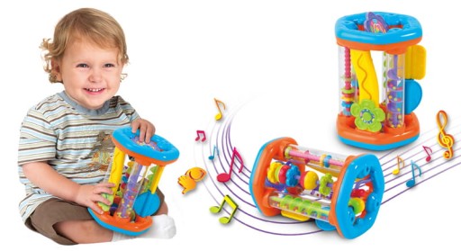 Równie ważny, co rozwój intelektualny jest rozwój sprawności fizycznej. Roler tocząc się po podłodze zachęci dziecko do nauki raczkowania i wspomoże rozwój koordynacji ruchowej, dostarczając mu przy tym niesamowitej radości. Intensywne kolory będą stymulować zmysł wzroku, a dźwięki, które będą wydawać grzeczotki - zmysł słuchu.