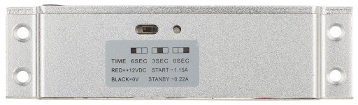 Napięcie znamionowe: 10 ... 15 V DCPobór prądu: 220 mA / 1150 mA - w chwili załączeniaZastosowanie: drzwi prawe / drzwi leweBlokada zapadki: Funkcja pamięci: Praca rewersyjna: Po zaniku napięcia drzwi będą odblokowaneRegulacja luzu: Dopuszczalny czas nieprzerwanej pracy: nieograniczonyWybrane cechy: Regulacja opóźnienia zaryglowania drzwi : 0 / 3 / 6 s Sygnalizacja LED Odległość wysuwu trzpienia : 15 mm Montaż nawierzchniowy (można stosować na wąskich ościeżnicach drzwi) Dodatkowa płytka montażowaWaga: 0.424 kg (łącznie)Wymiary: 150 x 41 x 26 mm - Zamek elektromagnetyczny