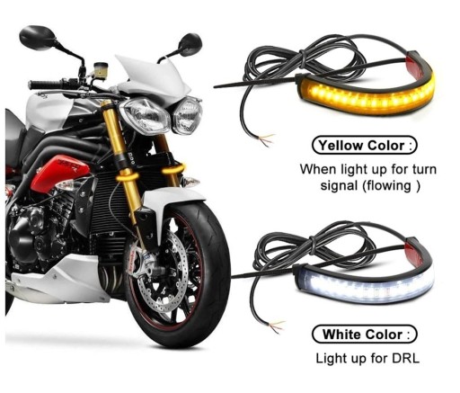 Standardowo listwa świeci na biało a po włączeniu kierunkowskazów biały gaśnie a listwa miga na pomarańczowo (płynący kierunkowskaz). Po wyłączeniu kierunku listwa po około 2 sekundach zapali się na biało jako światła dzienne.