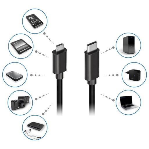 Kabel, który idealnie sprawdzi się w przypadku przenoszenia danych między np. laptopem z USB-C a Smartfonem / Aparatem z Micro USB.
