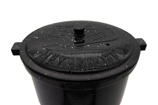 Oryginalny kociołek Meyerhoff wykonany z najwyższej jakości stopu żeliwa odpornego na najwyższe temperatury. Specjalny odpowietrznik w pokrywie, który reguluje ciśnienie wewnątrz kociołka, przez co jest on w 100% bezpieczny. W środku pokryty żaroodporną emalią, która chroni i zabezpiecza wnętrze kociołka, dodatkowo ułatwiając jego mycie i konserwacje (nie ma potrzeby impregnowania po każdym użyciu). Kociołek dzięki poręcznemu uchwytowi może być zawieszony również nad ogniskiem. Produkt posiada odkręcane nóżki, przez co kociołek można umieścić w kominku lub bezpośrednio w palenisku. Dzięki wytłoczeniu na pokrywie masz pewność, że kupujesz oryginalny i bezpieczny produkt.