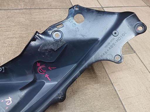 - ubytek i pęknięcie przy mocowaniu do ramy