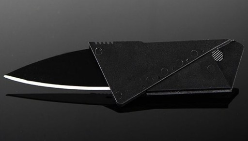 - Karta kredytowa, którą kilkoma prostymi ruchami zamienisz w ostry nóż z 65 mm ostrzem. W pozycji złożonej ostrze zabezpieczone jest blokadą, która nie pozwala na przypadkowe otwarcie się noża w kieszeni czy w portfelu.