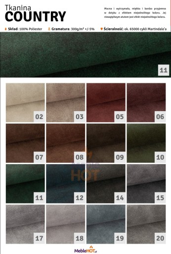 W ofercie również dostępne tkaniny o właściwościach EASY CLEAN (za dopłatą).