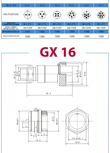 Złącze przemysłowe lotnicze CNC 16 mm 4 pin GX16