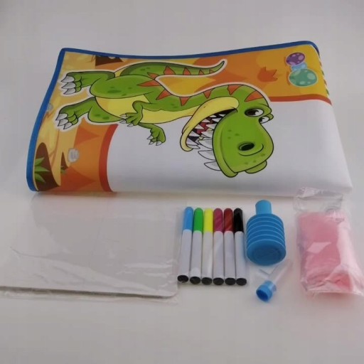 ▶️Zasada działania maty wodnej jest niezwykle prosta - zwilżony wodą materiał sprawia, że uwidaczniają się na nim kolory. Po napisaniu czegoś wodnymi pisakami bądź odbiciu pieczątek wzory pozostaną wyraźne przez kilka minut po czym znikną. Dzięki temu, odpowiednio przechowywaną matę można używać w nieskończoność!