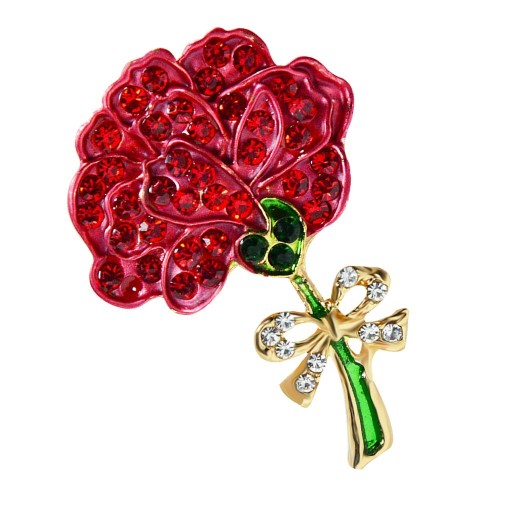 Красивая брошь в виде цветка гвоздики вечернее платье