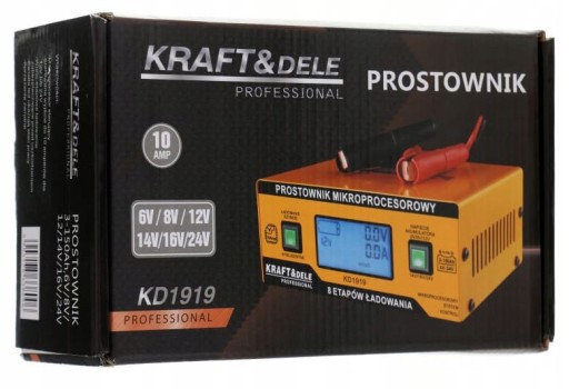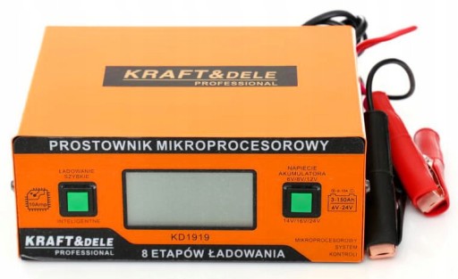 Prostownik mikroprocesorowy KD1919 Polskiej firmy Kraft&Dele to niezawodne urządzenie prostownikowe do ładowania wszystkich typów akumulatorów kwasowo-ołowiowych (WET/MF/CA/EFB/GEL/AGM).