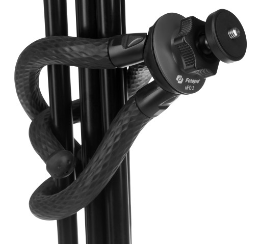 Fotopro uFO 2 - czarny to lekki i wszechstronny statyw zaprojektowany do współpracy ze smartfonami, kamerkami sportowymi i małymi aparatami fotograficznymi. Jego zalety docenią szczególnie podróżnicy, vlogerzy oraz sportowcy.