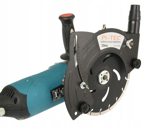 Osłona umożliwia podłączenie odkurzacza przemysłowego umożliwia odsysanie pyłu podczas cięci.