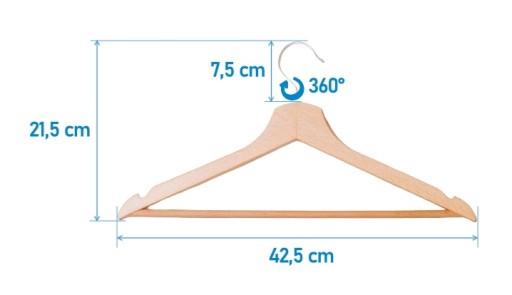 Drewniany wieszak na ubrania jest nie tylko funkcjonalny, ale także dodaje odrobinę elegancji do Twojej szafy. Wykończenie z naturalnego drewna uzupełnia każdy wystrój szafy i dodaje ciepłe oraz przytulne uczucie do Twojej przestrzeni życiowej. Dzięki temu zestawowi wieszaków możesz zorganizować swoją szafę ze stylem oraz z łatwością utrzymasz swoją garderobę w schludności.