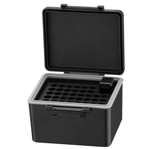 Spód wnętrza wypełniony został gęstą pianką EVA, a góra posiada organizer z wyciętymi otworami, dzięki czemu możemy nie tylko uporzadkować posiadane baterie, ale także w doskonały sposób zabezpieczyć je na czas transportu i przechowywania. Pianka EVA amortyzuje baterie, uniemożliwiając im poruszanie się, ocieranie się, a także wydawanie dźwięków podczas podróży.