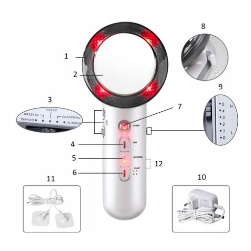 - Głowica masująca (fale ultradźwiękowe)