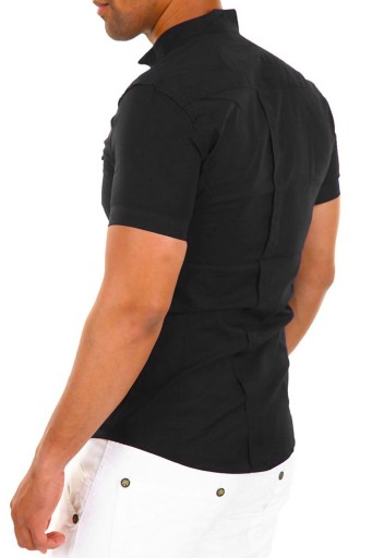 СТИЛЬНАЯ ЧЕРНАЯ МУЖСКАЯ РУБАШКА С ВОРОТНИКОМ СТОЙКА CLUB - XL