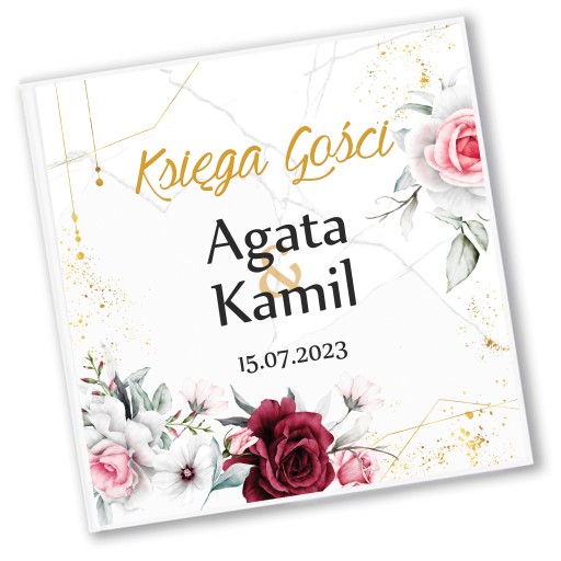 Spersonalizowana Księga Gości w formie albumu z pięknym motywem z kolekcji Bordowych kwiatów