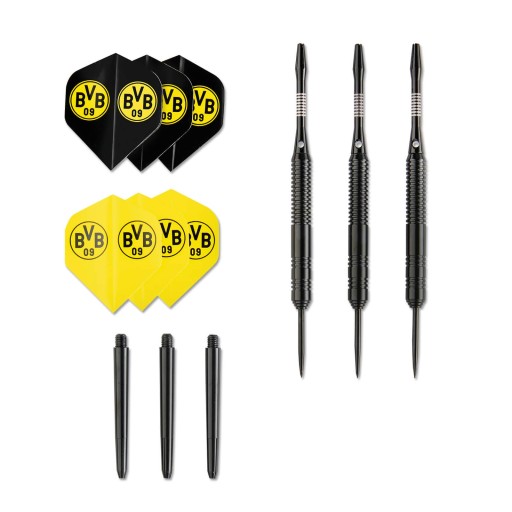 - materiał wysokiej jakości: Nasze borussia Dortmund rzutki są wykonane z metalu i PVC, stalowe rzutki / baryłkę: L: 52mm, średnica: 8mm, 18g / Wały: L: 43mm, 2G.