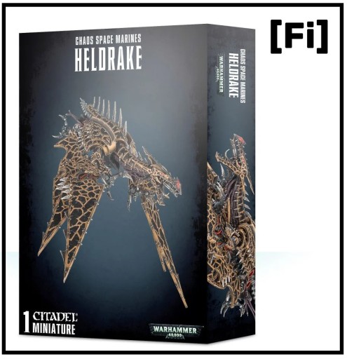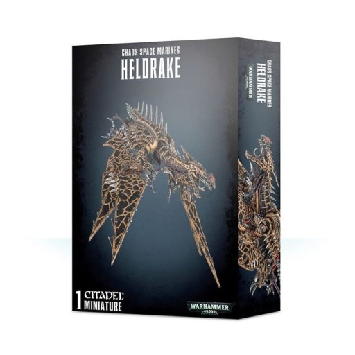 Ten wieloczęściowy plastikowy zestaw pudełkowy zawiera 49 elementów, latający łodygę i dużą owalną podstawę, z której można zbudować jeden Chaos Space Marine Heldrake. Ten zestaw jest dostarczany w wersji niepomalowanej i wymaga montażu - zalecamy użycie kleju Citadel Plastic Glue i Citadel Paints.