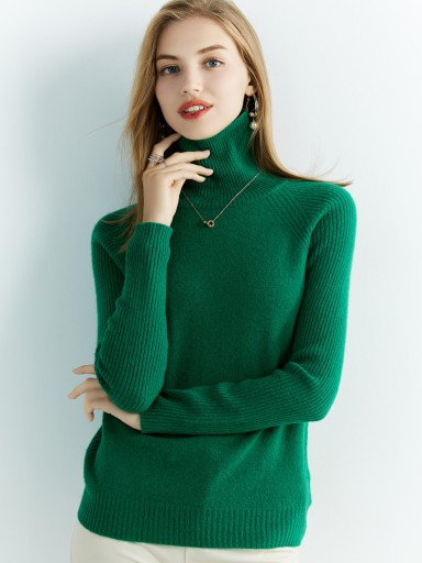 SWETER 100% WEŁNA MERINO GOLF ZIELONY XXL