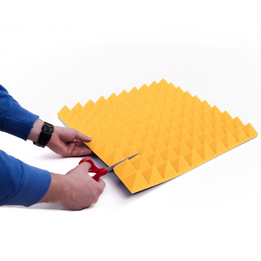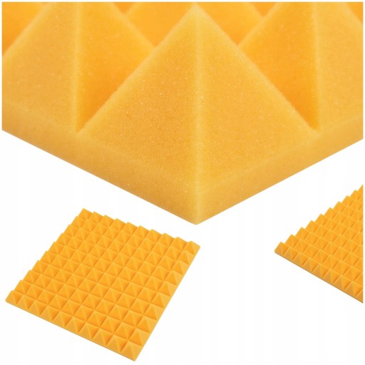 Cena dotyczy 1-sztuki pianki akustycznej Piramida (bez kleju) w kolorze żółtym o wymiarach: długość 50cm x szerokość 50cm i wysokość 5cm