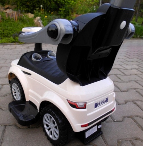 Pojazdem w wersji jeżdzik, dziecko może jechać do przodu i do tyłu, może skręcać w prawo i w lewo, w wersji pchacza z poręczami zabezpieczającymi - koła i kierownica są zablokowane.