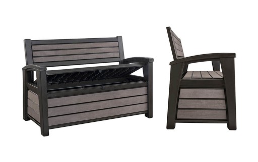 HUDSON STORAGE BENCH to połączenie funkcjonalnej skrzyni i ławeczki do siedzenia dla 2 osób. Wygląd skrzyni do złudzenia przypomina schowek wykonany z naturalnego drewna. Produkt odporny jest na działanie niekorzystnych warunków atmosferycznych. Łatwy w utrzymaniu w czystości.